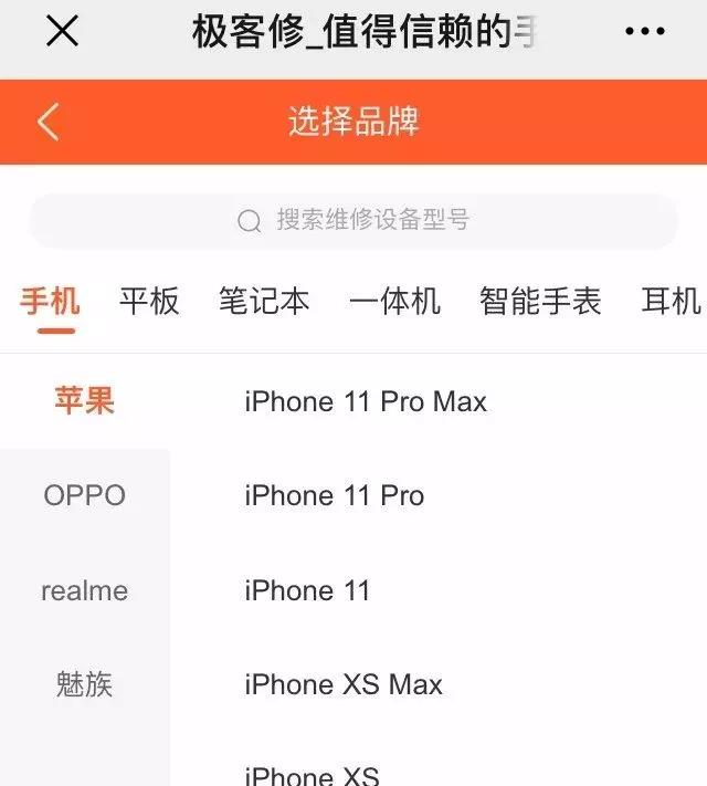 小编发现,目前极客修平台仍正常运行,但可选维修手机中已经没有华为。