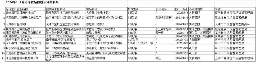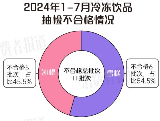 今年1-7月期间,各地监管部门抽检发现不合格冷冻饮品共11批次,包括6批次雪糕、5批次冰棍。