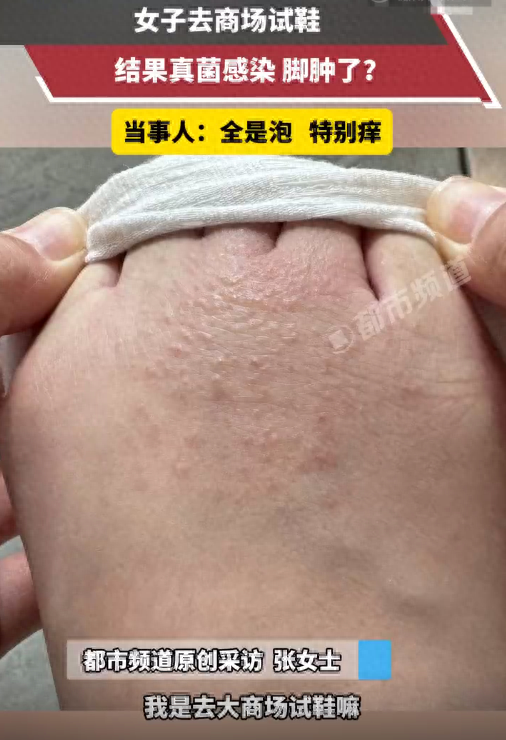 女子商场试鞋,回家后瘙痒难耐,一看密密麻麻全是泡!