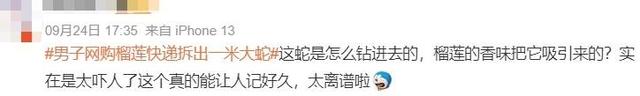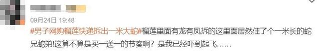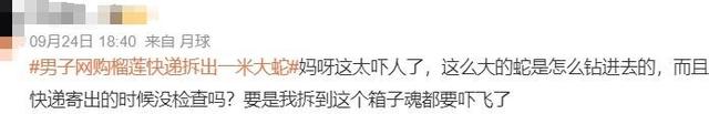 男子网购榴莲快递拆出大蛇,网友:买一送一?吓到起飞