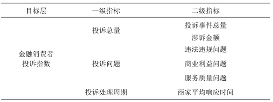 在金融消费者投诉指数指标体系构建中,需要将其作为一个整体,分析可能影响投诉行为的主要因素,每个主要因素再进行细分,指标的查找应当要准确、抓住重点,从而反映出金融消费者投诉的真实情况。