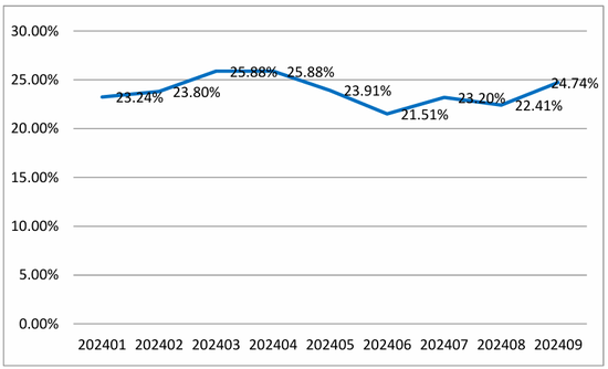 本报告数据显示,前三季度畸高息费的投诉总量超过10万笔,每月投诉比例稳居20%以上,3、4月相对最高,均超过25%,9月也有所抬升,超过24%。