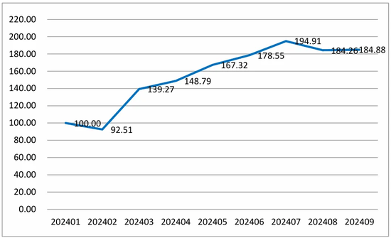 考虑到春节长假的影响,金融消费者投诉总指数在2月有所下滑,随后持续走高,7月达到最大值194.91。8月指数下滑到184.26,仍高于6月的水平,9月指数略有抬升,为184.88。