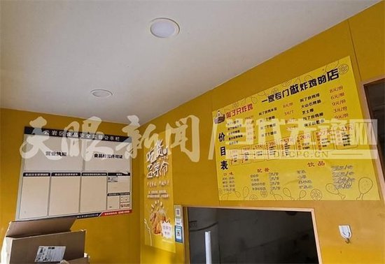 当日12时40分许,记者赶到相关区域走访,该店铺卷帘门处于打开的状态,但入内查看一圈发现,包括云岩区食品安全监督公示栏的营业执照、食品经营许可证等均已撤除,内部随意堆放着一些快递包装箱等,屋内已没有餐饮经营痕迹。但通过店面门头、价目表等张贴在显眼位置的信息,这里原来是“叫了只炸鸡”的一处经营场所。
