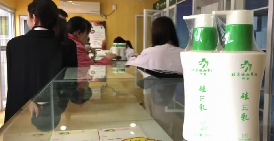 “我们没有‘维E乳’,从来没卖过。”在位于北京协和医院院内北部的北京协和医院护肤品销售区,该销售点的工作人员表示。在这一销售点外还立着一块白底绿色的牌子,写有“真正的北京协和医院研制的E乳”字样。