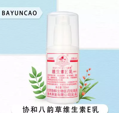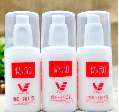 白色塑料按压嘴小瓶、红色字体的透明标签加上一个透明塑料盖,外观朴素得像上个世纪的化妆品,这就是“网红”协和维E乳。