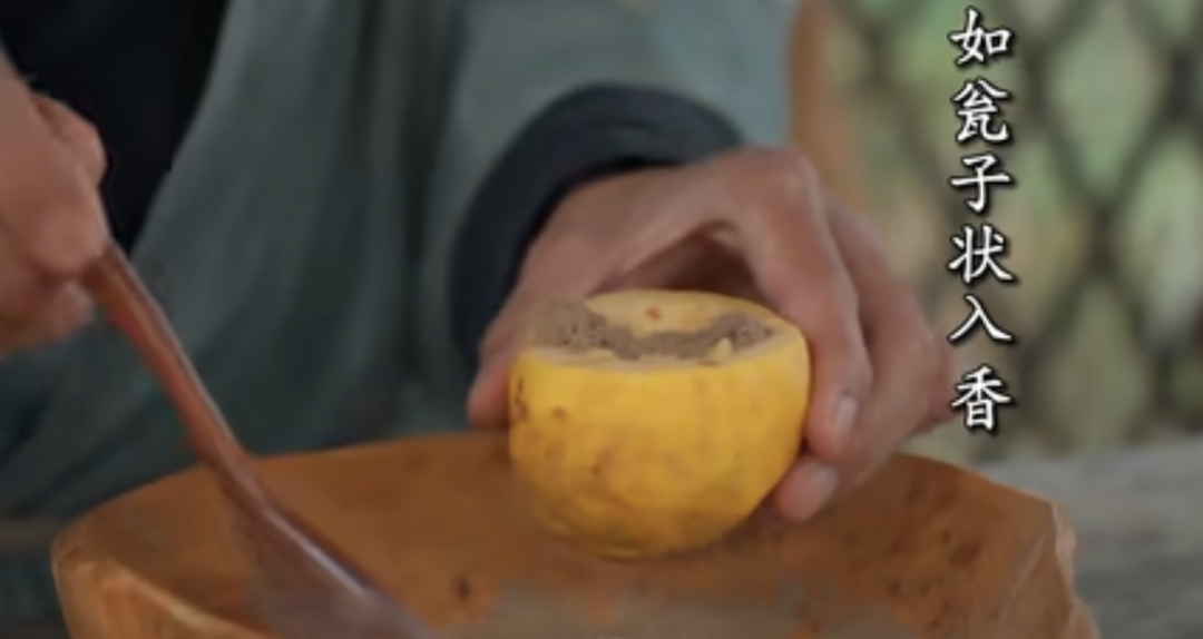 此香据记载,是由沉香和檀香末封入鹅梨中反复蒸制,捣碎制成丸或饼而成,花果香混合着檀香和沉香,丝丝缕缕,令人沉醉~