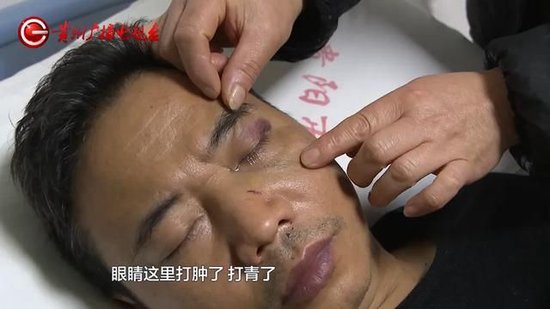 郭师傅的弟媳:鼻梁骨打断了,头是昏的,到现在都不清醒,眼睛这里打肿了,胸口这里,医生说是第几根肋骨好像断了,我没听清楚。有影响,像骨折那样,现在是肿的。