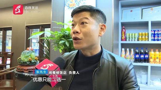 湘粤楼饭店 负责人 张先生:充值之前就告知的,包括我们之前所有的广告全部打出去的,优惠只能二选一。