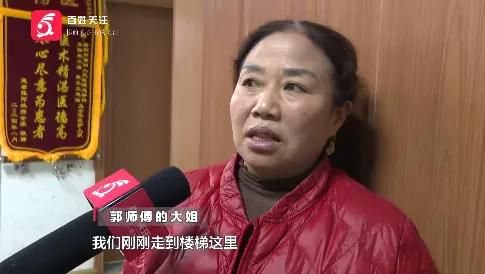 郭师傅的大姐:我们刚刚走到楼梯这里,就冲过来一大帮人,就开始打人抓扯,把我弟弟拉到旁边角落,几个人就打我弟弟。