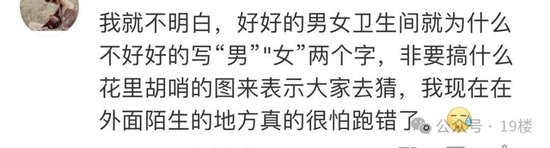 在这条帖子的评论区,有网友认为,此标识带有不良隐喻,容易给青少年带来负面引导。有网友表示,人遇“三急”时,如果还得花时间去思考这个字的象形含义,会很麻烦。