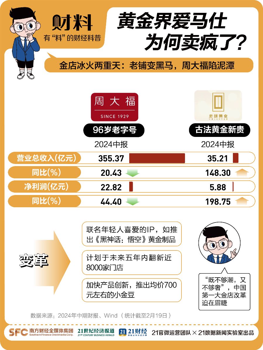 2月21日,老铺黄金港股股价收于548.5港元/股,上涨超17%,总市值为923.49亿港元。据《21财料》栏目统计,老铺黄金股价从上市的40.5港元至今,8个月暴涨超12倍。其靠“一口价定价”策略,部分产品1克重已超1400元,较其他品牌溢价500元/克。