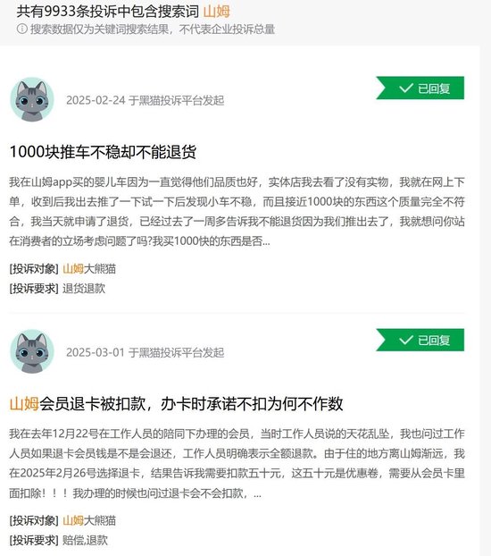 据此前报道,2024年山姆曾在10天内被五次曝光翻车新闻,均涉及食品安全问题。截至2025年3月13日,据黑猫投诉平台,有近1万条投诉包含搜索词山姆。