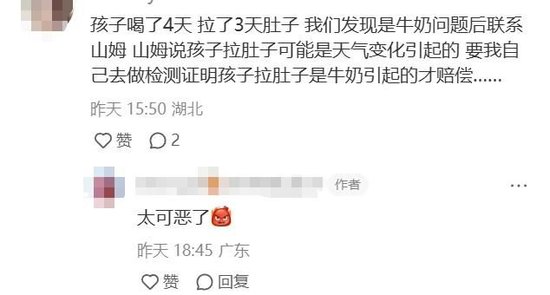 山姆这款牛奶被多人投诉!多渠道已下架,山姆回应:正常现象
