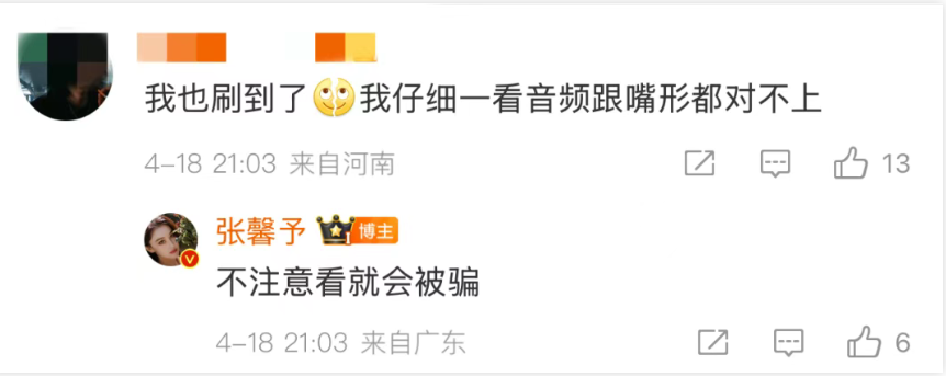 除了张馨予,还曾有不少明星成为AI伪造视频的素材。