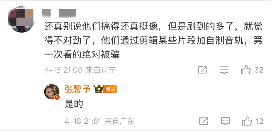 图片来源:张馨予社交平台评论区,不少网友表示自己此前也刷到过类似的视频,不仔细看很容易被骗。