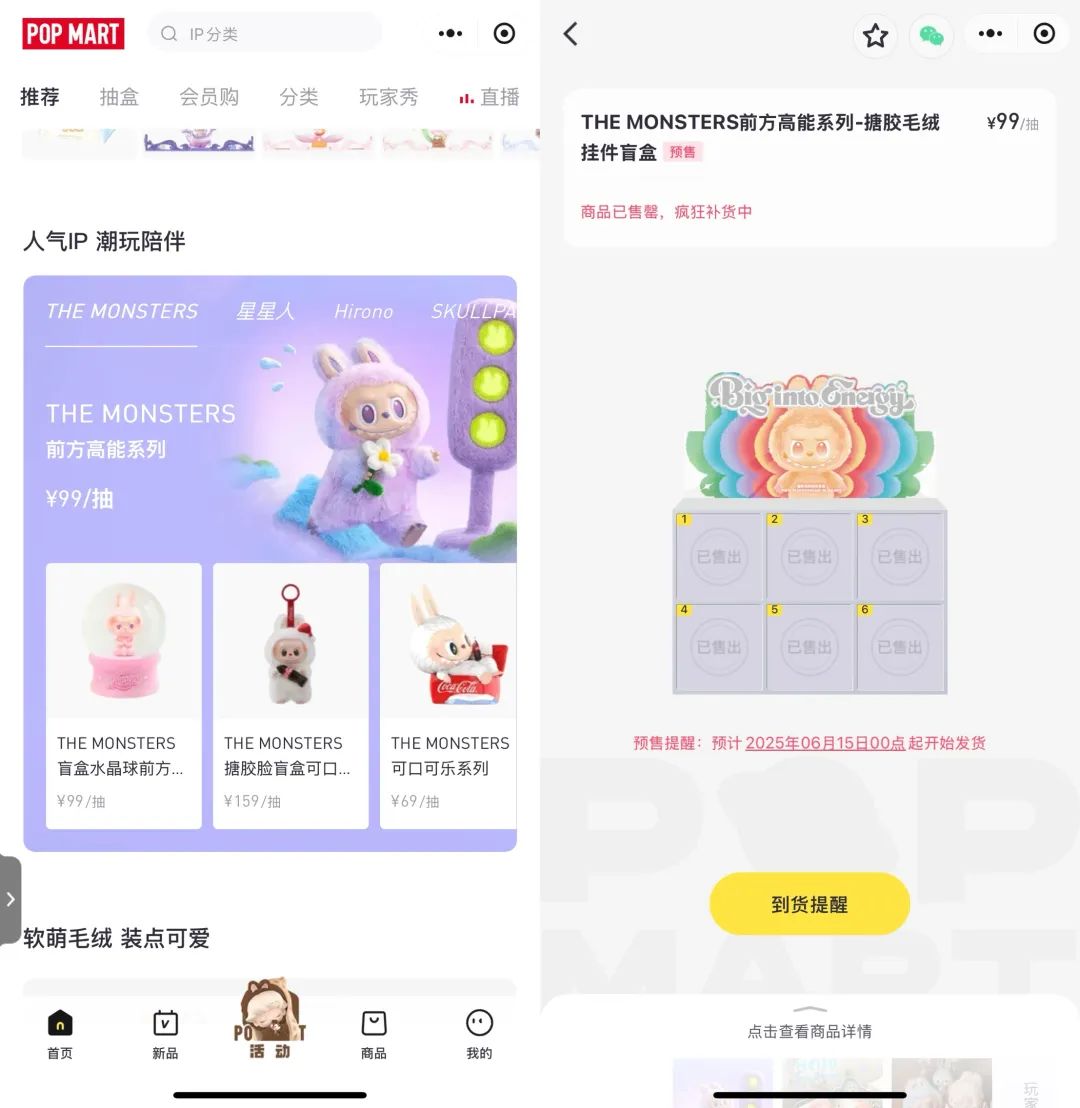 作为泡泡玛特现象级IP,LABUBU第三代搪胶毛绒产品“前方高能”系列于四月底发售。新品上架即被抢购,官方小程序显示预售产品将从6月15日起发售。