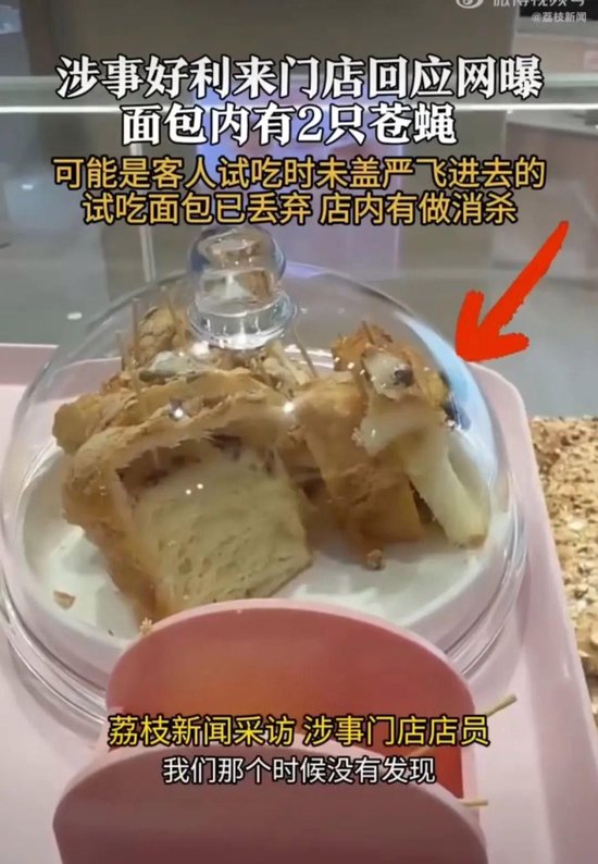 好利来门店面包上疑有2只苍蝇乱飞,门店店员回应