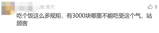 对此,有网友表示:“这么多规矩,花3000元还要受气!”