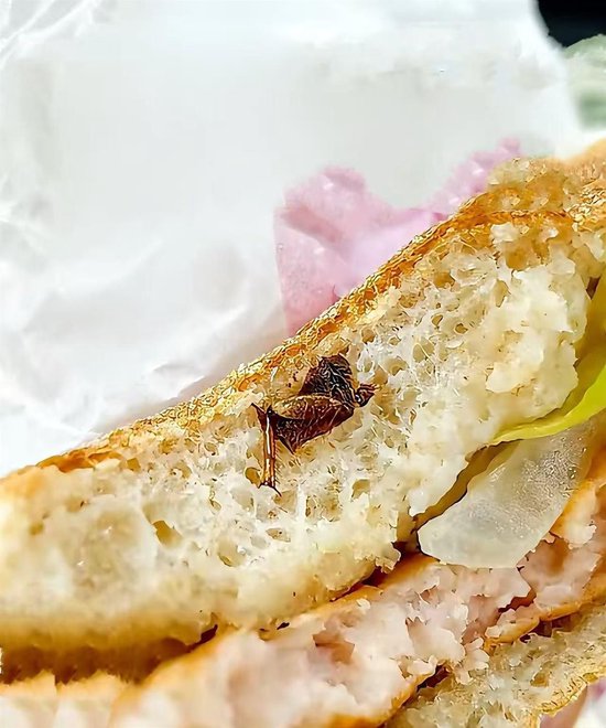 方女士反映,11日,她在广州市二宫的某快餐店购买了一份套餐外带食用。在食用过程中,她发现面包胚内嵌有半只蟑螂,已呈干尸状态。她随即抠自己的喉咙,并在呕吐物中发现另外半只蟑螂残体。方女士拍摄的视频画面显示,在一份食用一半的火腿面包中,的确嵌有半只干尸状蟑螂。