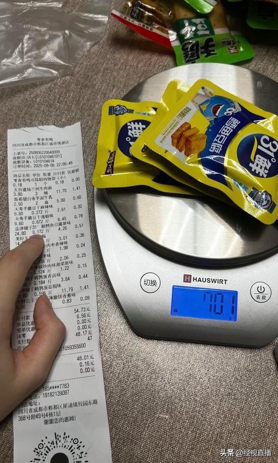 网友称成都一零食店称重每份多称16克 门店:小票堆积秤上致称重误差 已加强员工操作规范
