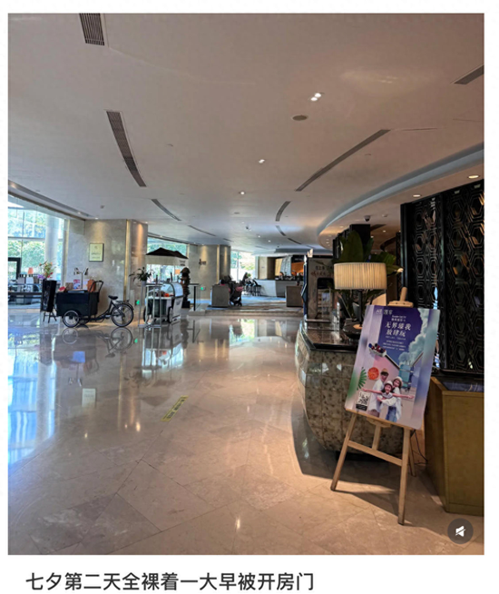 网友称住上海星级酒店“七夕第二天全裸着一大早被开房门”,酒店:维修师误入