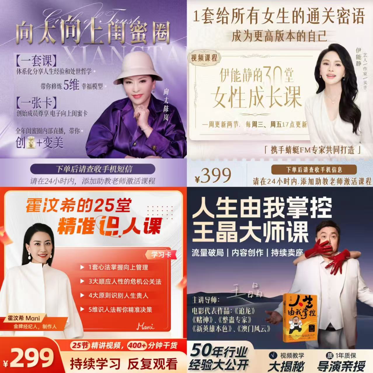 知识付费逐渐被大众接受,明星凭借自身影响力和专业技能卖课,早已不是新鲜事。此前,王力宏、汪峰与吴彦祖,就主要围绕个人职业履历推出音乐、英语等技能类课程。而近期开课的向太们,课程卖点则是人生经验本身。