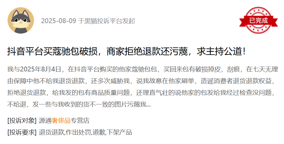 这并非个例,黑猫平台上不少消费者投诉,高价购买奢侈品遇到各类纠纷。这些看似“心照不宣”的行业潜规则,正在把消费者的信任一点点耗尽。