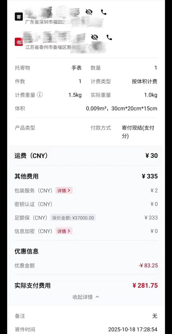 价值40万劳力士快递途中不翼而飞?警方已介入
