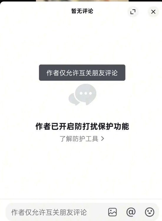 记者注意到,苏菲在一些社交平台中的评论区已设置为“仅允许互关朋友评论”。