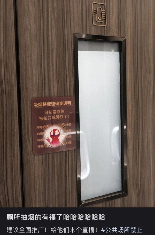 有网友发文在厕所遇到“吸烟会变透明”的门