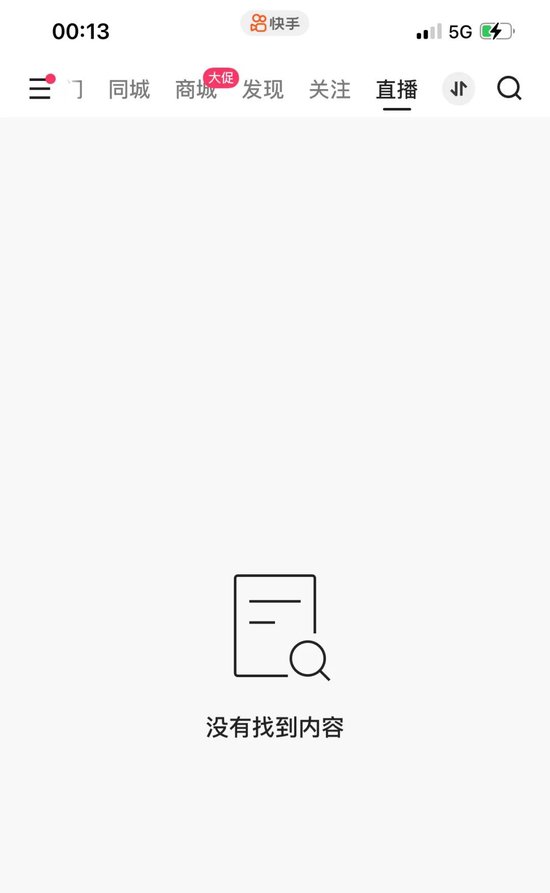 0点10分左右,快手直播频道内容清空,疑似全部关停。