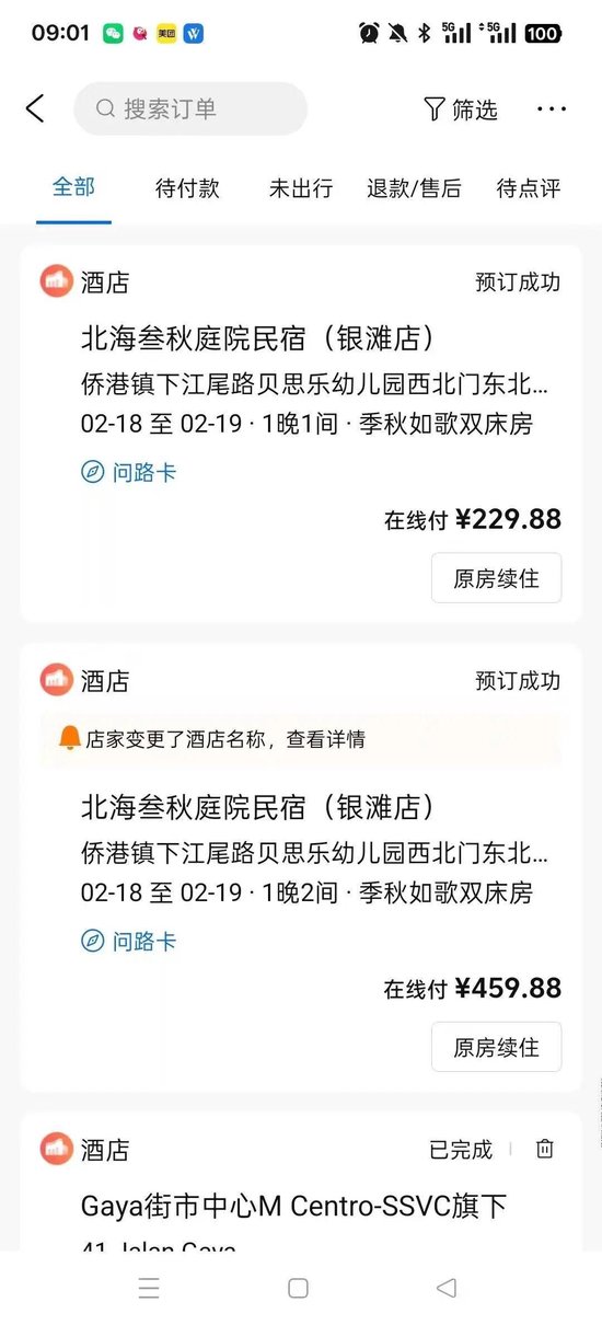 1月13日,刘女士在某旅游服务平台预订了2间北海叁秋庭院民宿(银滩店),入住时间为2月18日,大年初二。