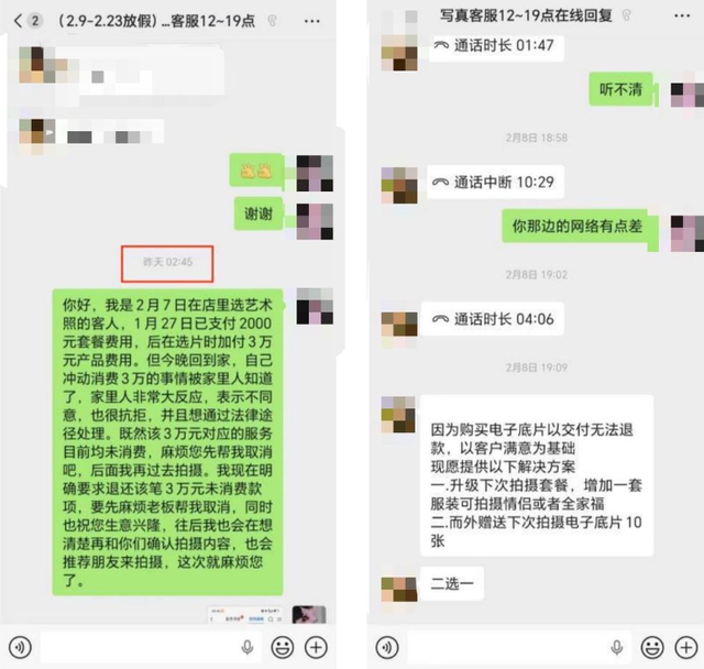 “188套餐”拍写真结果花费3万,24岁女子离店3小时反悔 欲退款遭拒 商家:明码标价
