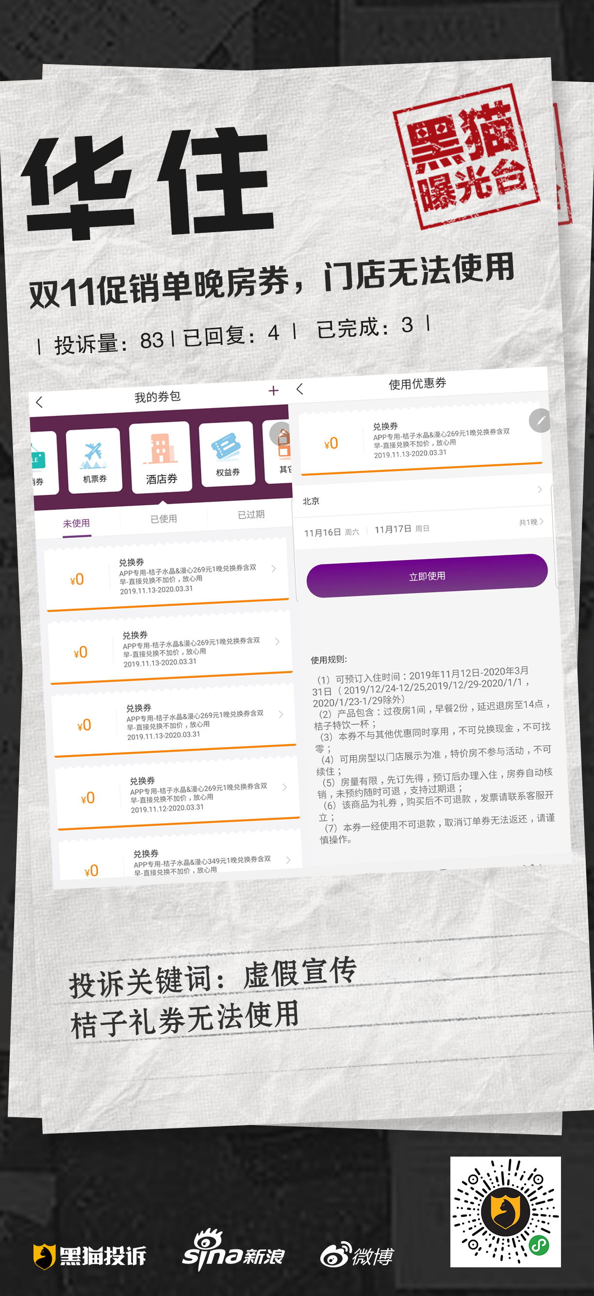 【黑猫曝光台】华住酒店双十一优惠券不能用#