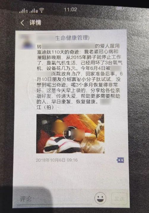 面对这样的宣传,刘菊信了,她花4万元买了约190盒产品,想给丈夫服用。然而,在吃了大约150盒后,丈夫的病情并没有好转,刘菊便联系朋友,要求退掉剩余的产品,结果对方却一拖再拖,“2019年9月,对方答复我‘你自己处理’,然后把我拉黑了。”