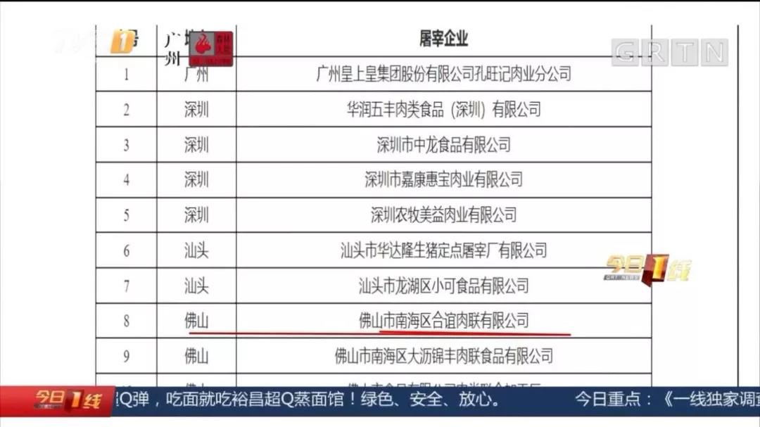 相关资料显示,今年九月份,广东省农业农村厅关于2019年第一批省级生猪屠宰标准化企业名单的公示中,佛山共有三家肉联厂上榜,其中,暗访中涉及的南海合谊肉联有限公司就名列第八位。
