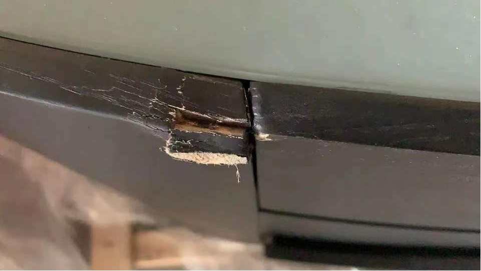 最终,徐先生花了630元将柜子寄出。到货后,徐先生没有收到商家的退款,却收到了商家发来的反馈:柜子损坏了。从商家发的照片来看,每个柜子都有不同程度的磕碰和掉皮。商家表示,这些柜子影响了再次销售,因此不能给徐先生退款。