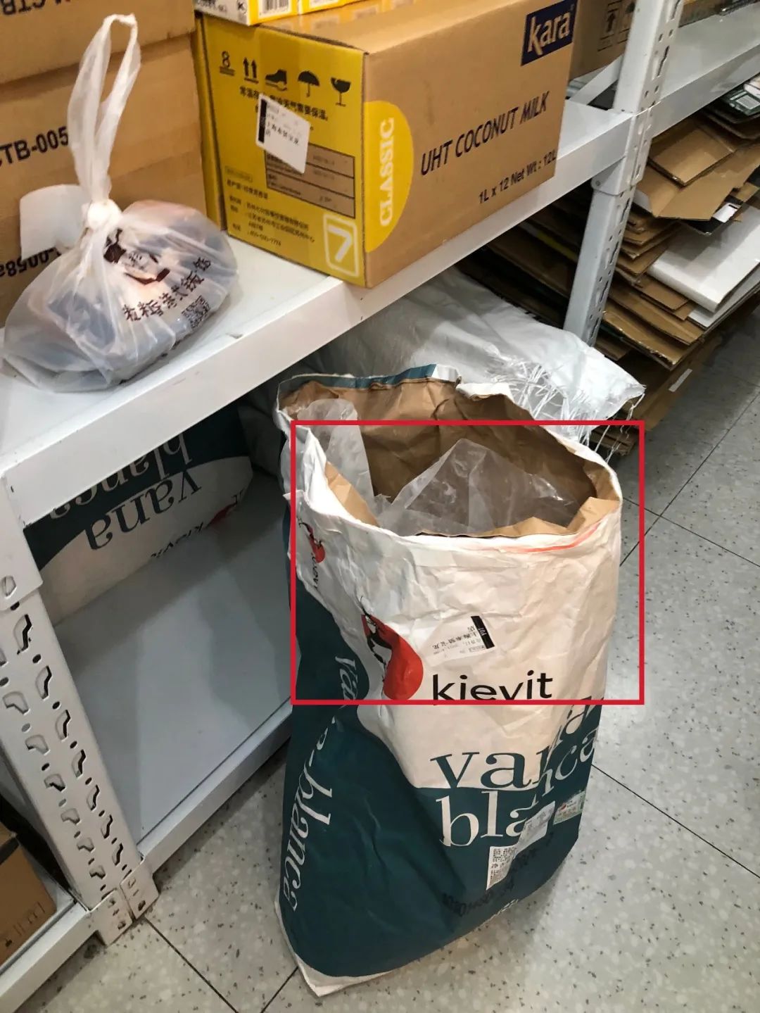 仓库内装原材料的袋子未封口;