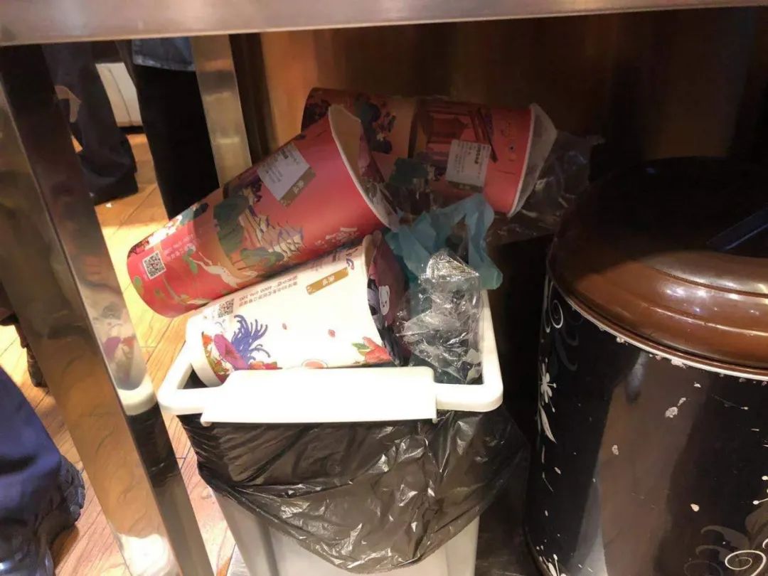 垃圾溢出,工作人员未及时清理垃圾桶;