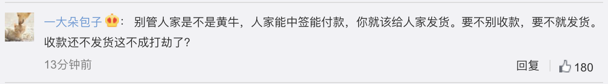 消息一出,有网友质疑:“这个明显就不是普通客户。”但随即就有网友辩驳道:“客户不分普通和不普通”、不管是谁购买,“买了就要发货”。