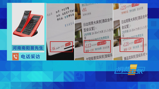 河南南阳的苗先生,在美团网上预订两间酒店的时候,也同时发现三个人的手机价格分别为106元、112元和128元。