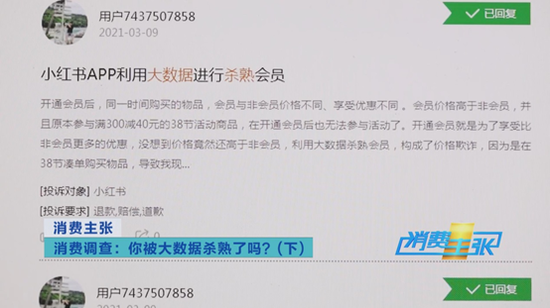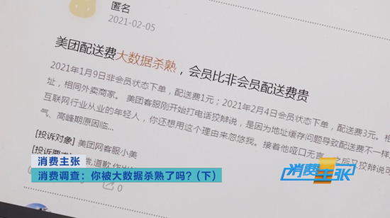 “我们平台现在如果搜索大数据杀熟,大概投诉量在将近1500件。”