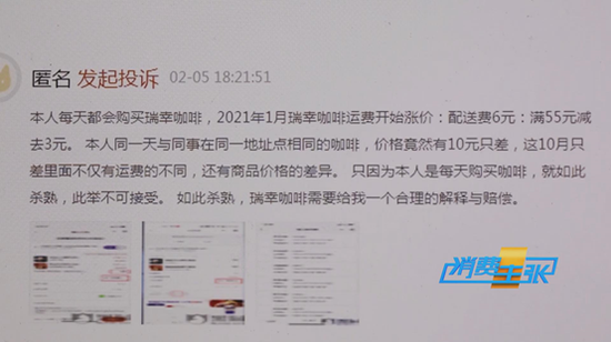 徐女士的同事不经常点瑞幸咖啡,而徐女士几乎每天都要点一杯咖啡,徐女士不明白,为什么老用户付的价格要比不常用的用户更贵呢?徐女士把自己的遭遇向瑞幸咖啡进行了投诉,但是瑞幸咖啡给出的说法徐女士却不接受。