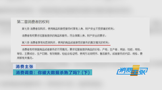 第八条规定:消费者享有知悉其购买、使用的商品或者接受的服务的真实情况的权利。