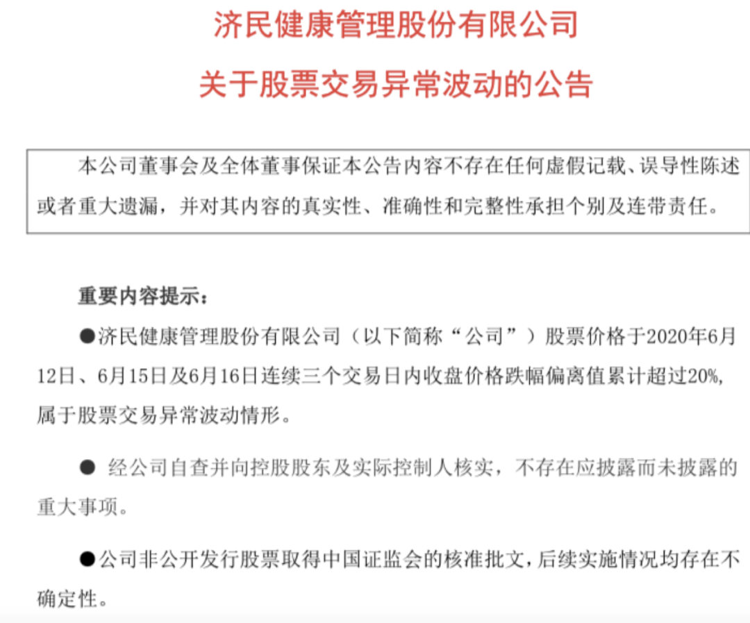 16日晚间,济民制药公告称:公司收到多位投资者反映,市场上存在有人利用微信群、QQ群及直播间向股民推荐买入我公司股票的情形。公司也已关注到网络上出现了关于该事件的媒体报道。经公司、控股股东、实际控制人、董事、监事及高级管理人自查,各方均未策划、参与该事件,亦未授意他人策划、参与该事件,与该事件无任何关联关系。