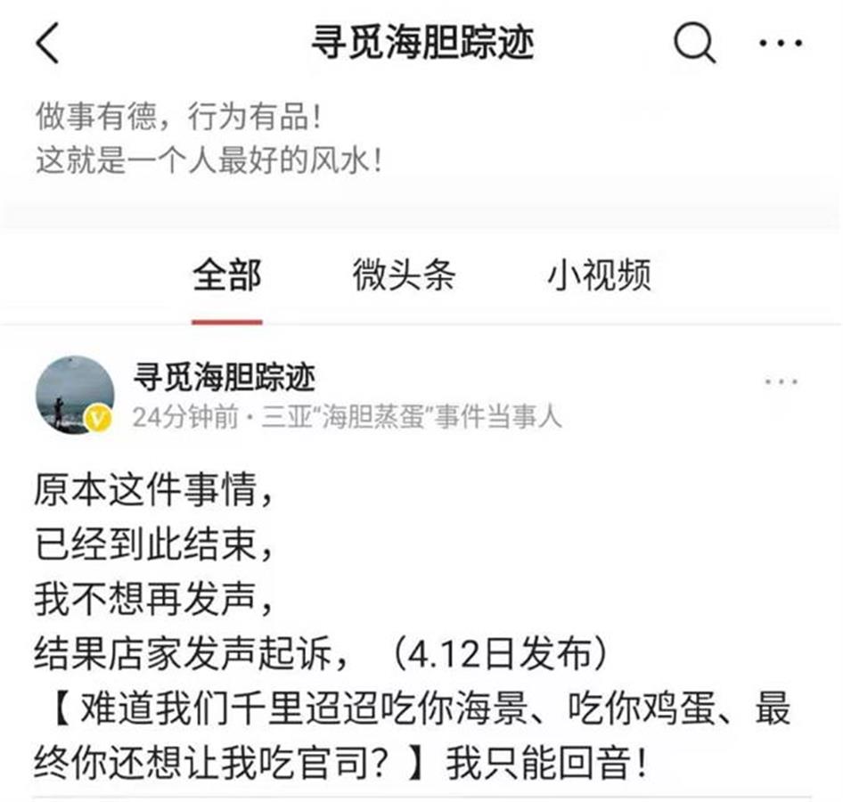 原标题:三亚“海胆事件”店家称将起诉消费者,当事人回应:相信法律