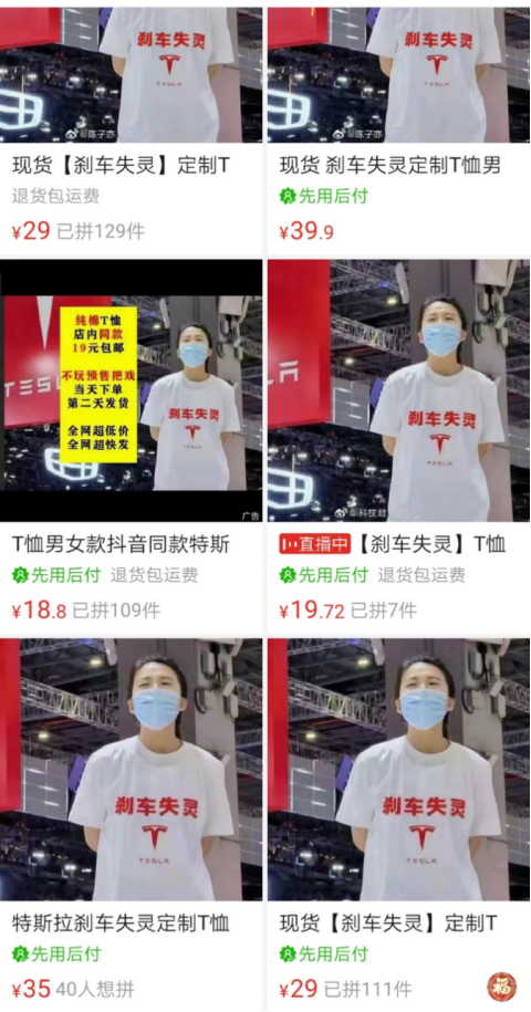 特斯拉“刹车失灵”T恤连夜上架销售多人下单购买 律师:构成侵权