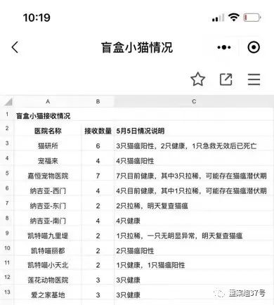 周先生告诉新京报记者,4日上午,成都市动物卫生监察局工作人员对这些小动物进行检测检疫后,志愿者们将情况较好、比较健康的宠物送往爱之家基地安置照顾,其余患病的宠物送往成都各大宠物医院接受治疗。据周先生提供的一份接收情况表格显示,宠物情况有“拉稀”、“猫瘟阳性”、“猫瘟潜伏期”等。